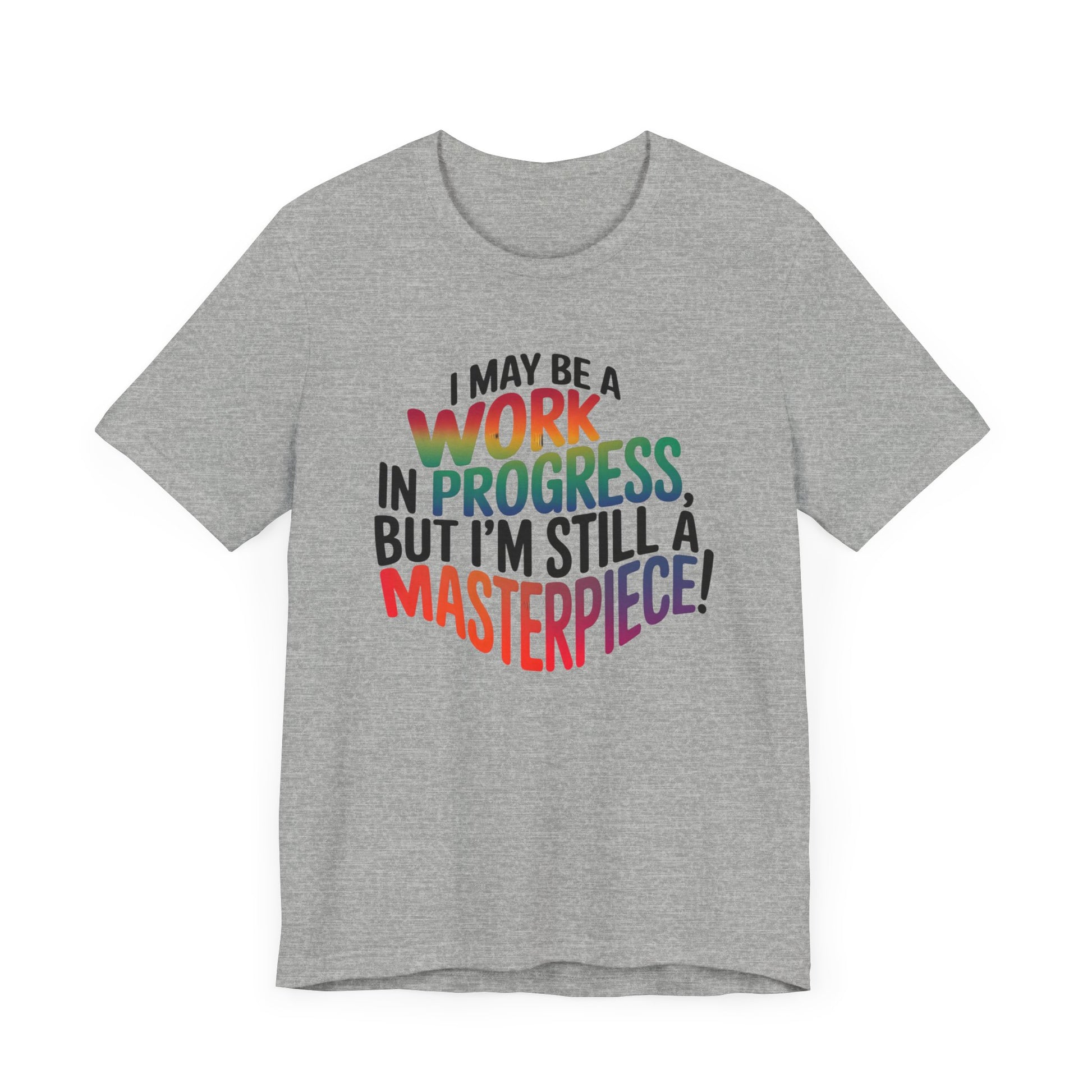 Stay stylish and inspired with this "I May Be a Work in Progress, But I'm Still a Masterpiece" t-shirt! Perfect for anyone on their growth journey, this motivational tee blends humor with self-love. Great for casual wear, gym days, or as an uplifting gift.